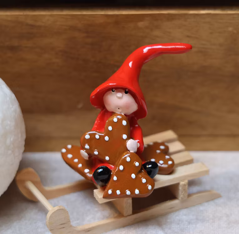 En go och charmig Nisse med pepparkakor i sitt knä! Han kommer i en fin presentkartong med liten text om nissen på baksidan av kartongen.