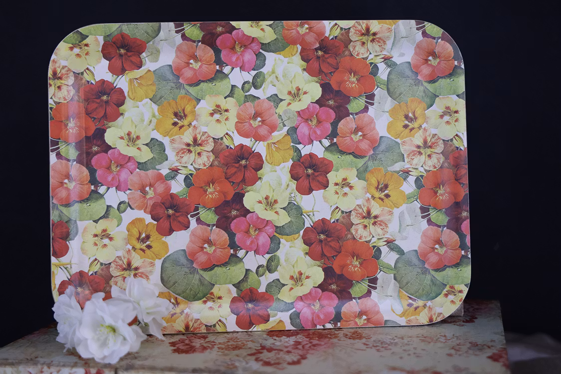 Bricka från Sköna Ting i Björkfanér med motiv av vackra sommarblommor i olika färger. En färgglad glädjespridare till fikat!