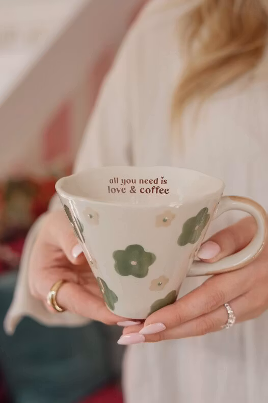 Texten på muggen: All you need is love & coffee.