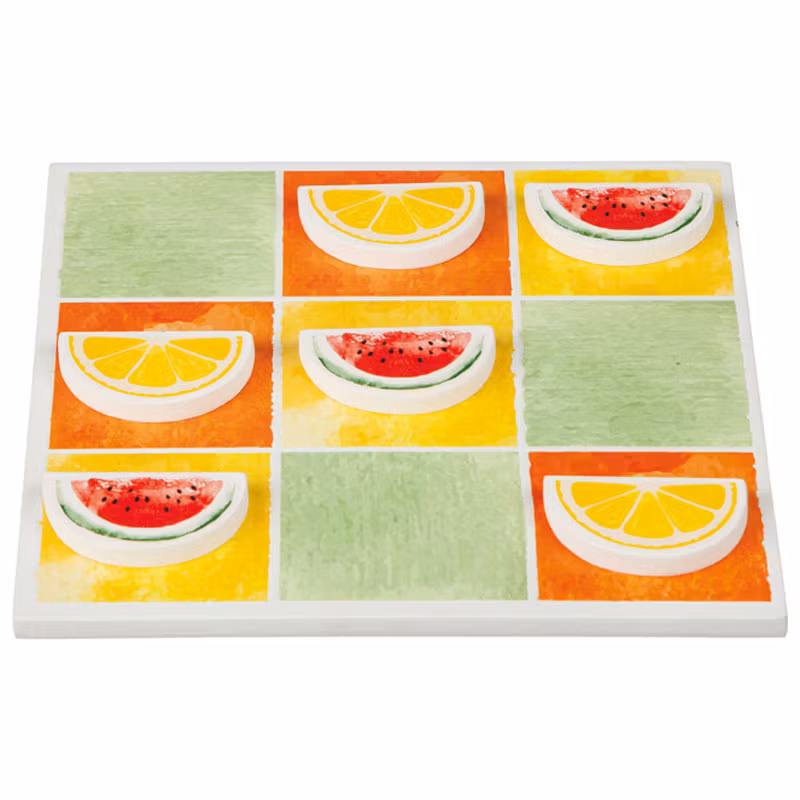 Färgglatt tre i rad med citroner och vattenmeloner som spelpjäser.