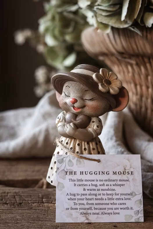 / This little mouse is no ordinary mouse. It carries a hug, soft as whisper & warm as sunshine. A hug to pass along or to keep for yourself when your heart needs a little extra love. To you, from someone who cares or from yourself, because you are worth it. Always near. Always love